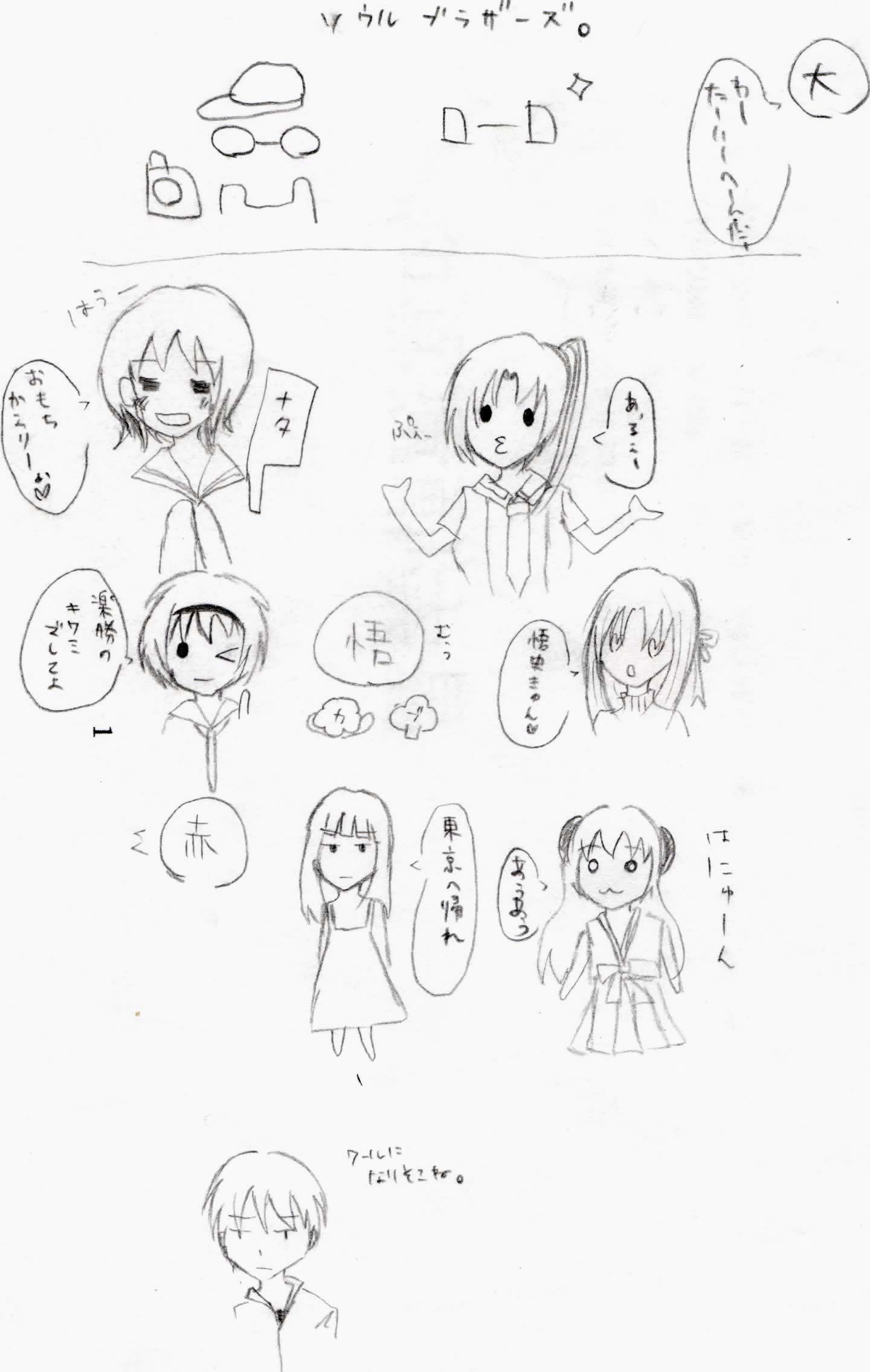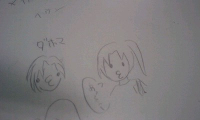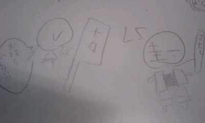 今日は授業始まる前くらいに「圭一書いて」みたいなこと言われたので、圭一と鉈を書いて、その横にレナを書いてみた。
